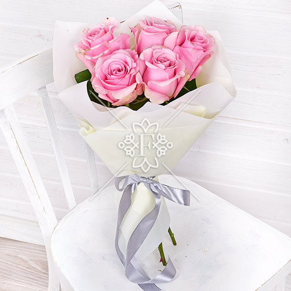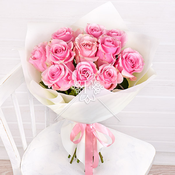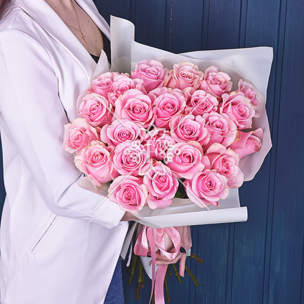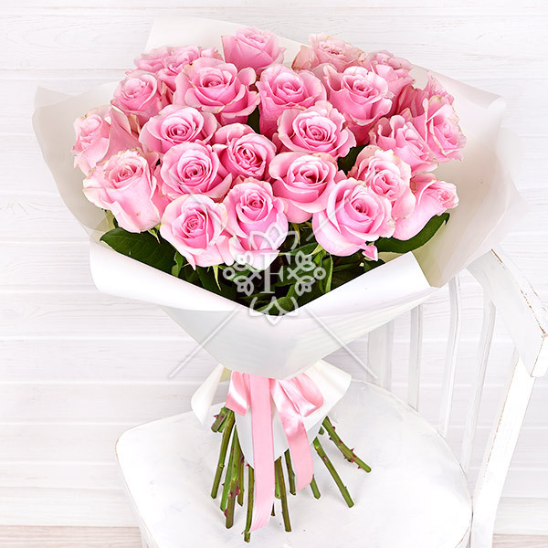Букет «Мой ангел», из прекрасных классических розовых роз ,своим невесомым ароматом, нежностью лепестков и гармонией и свежестью очарует  прекрасную получательницу.