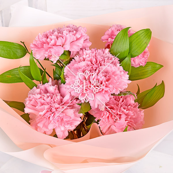 Букет из розовых гвоздик это  чудесный цветочный сувенир для  любимой жены или дочери, мамы, сестры или подруги. Приятный подарок уместно преподнести в День рождения, 8 Марта, а так же без особого повода.