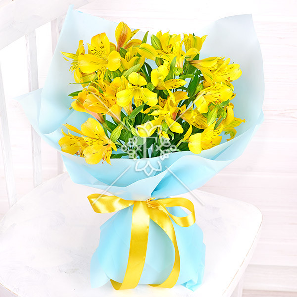 Альстромерия желтая -5 шт., упаковка, лента.